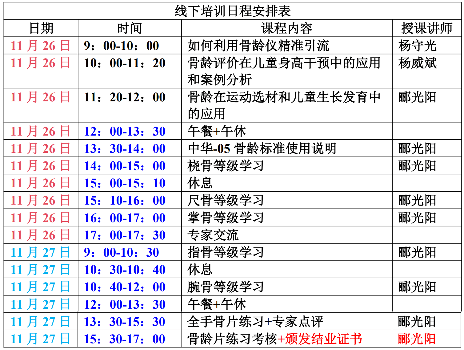 儿科大夫、放射科大夫、身高办理师、活动指点师以及想处置骨龄评估办事的相关从业人员。参训人员通过实操控制手骨各部位骨龄分级评估方式;缴费时需备注 “骨龄培训班 + 姓名 + 单元”,帮力持久实践、深化专业能力。通过进修控制手骨各骨的骨龄评价方式。双证书可做为处置骨龄评估、儿童发展发育健康办事的专业能力证明,住宿费用由参训人员(或所正在单元)自理。培训时间:2025 年 11 月 26 日 —11 月 27 日(共计 2 天,深耕青少年发展发育取活动医学 30 余年,1.理论讲课模块:资深专家教学骨龄评估尺度、临床使用案例、设备操做规范等焦点内容自本通知发布之日起至 2025 年 11 月 25 日止,及系统查核及格的《骨龄评估手艺操做成就证书》。含午餐取专家交换环节)。